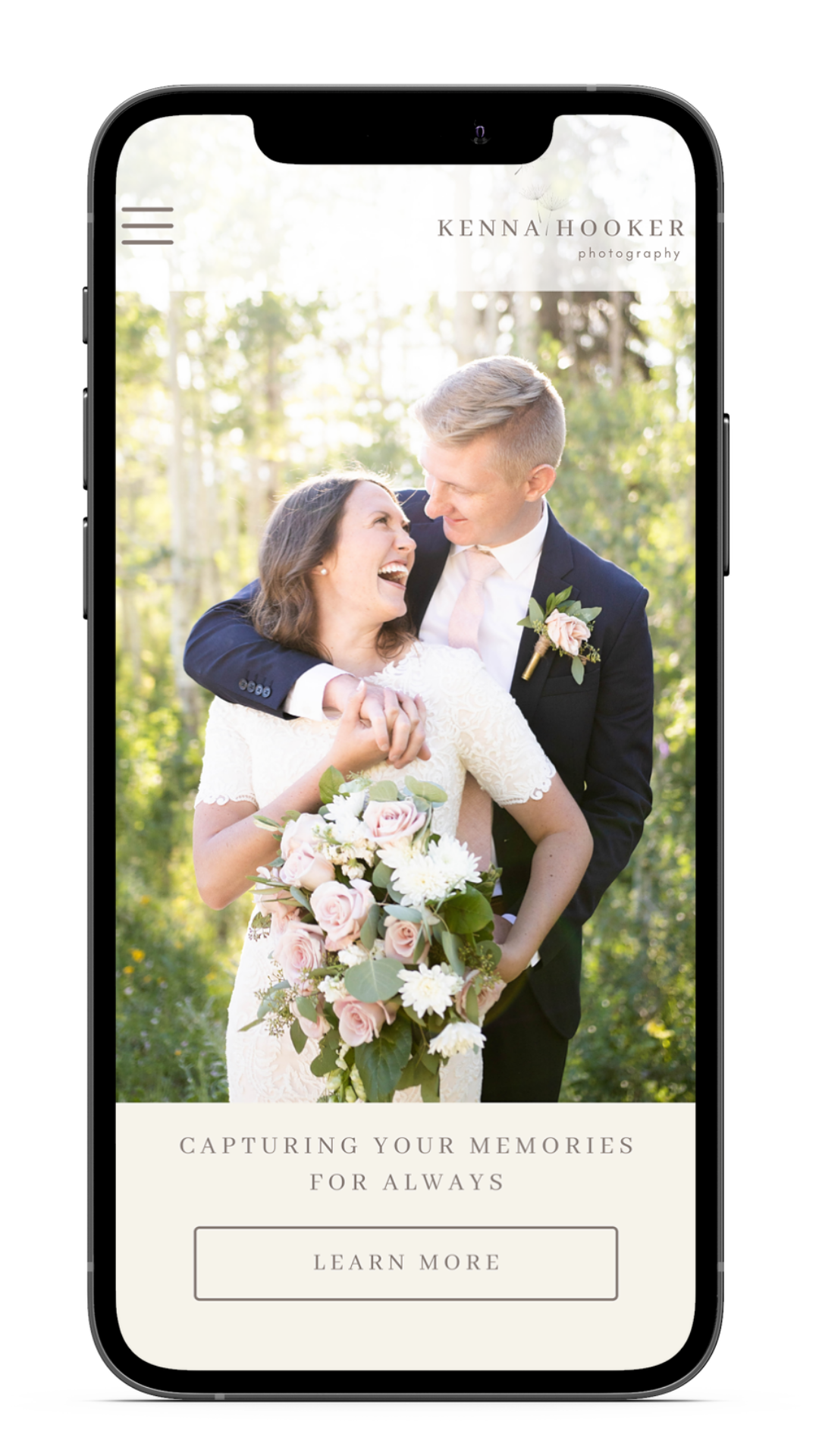 Kenna Hooker Photography brand can best be described as wistful, warm, and familiar. These concepts are keep consistent throughout the site.